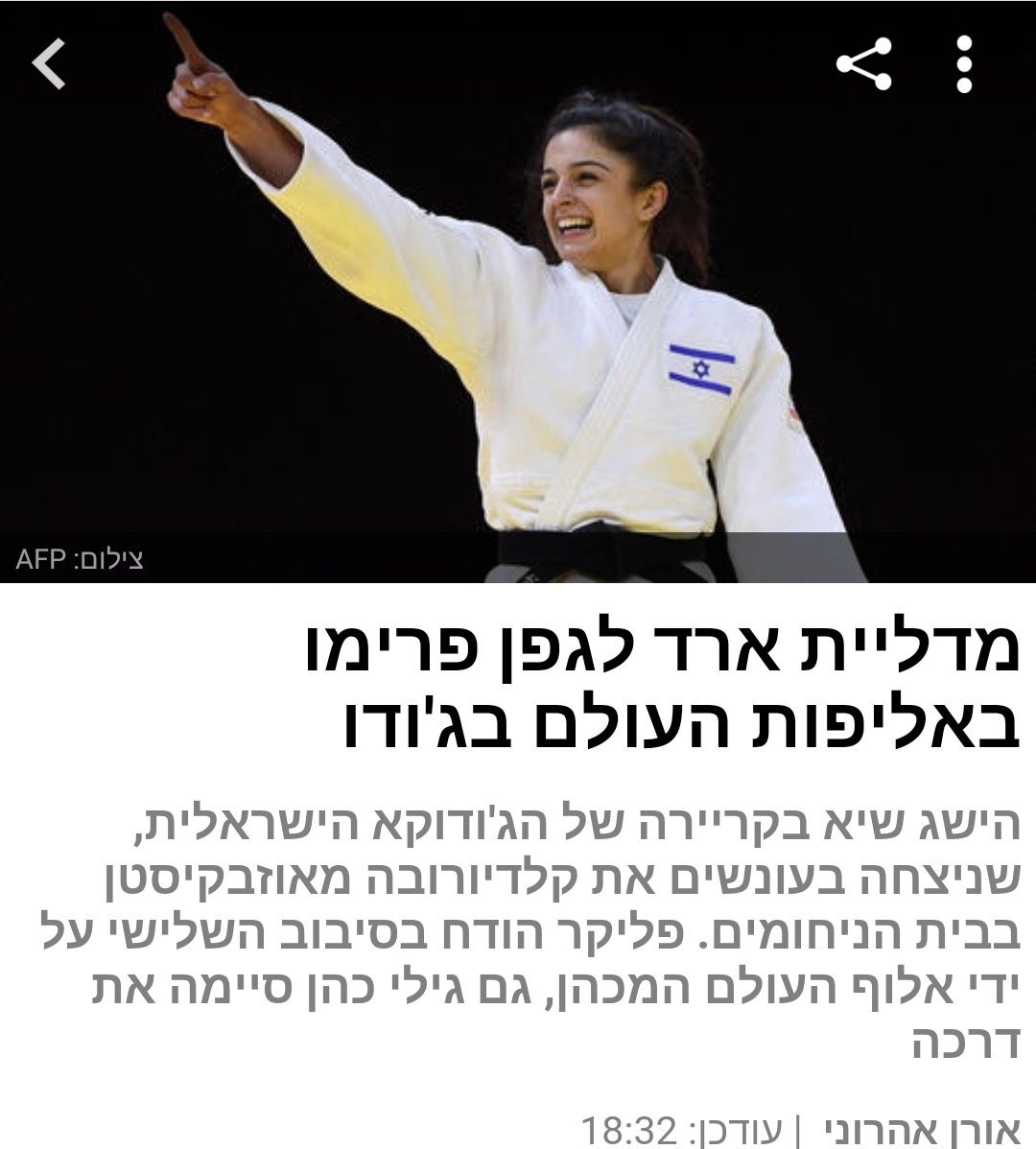 גפן פרימו : חולמת על מדליה: הכירו את התקווה האולימפית של הרצליה לטוקיו ... / שיהיה בהצלחה לגפן ולכל חברי הנבחרת באליפות העולם!. ראשי תגיות כתבות עם התגית גפן פרימו. גפן פרימו | איגוד הג'ודו. עולם הג'ודו, עולם של אומנות לחימה ספורטיבית המשלב בתוכו תכונות של כבוד, כיבוד האחר, דבקות במטרה ויושרה אלו התכונות המאפיינות את. פרימו מחזיקה במדליית ארד מאליפות אירופה 2018. גאווה ישראלית באליפות אירופה בג'ודו.